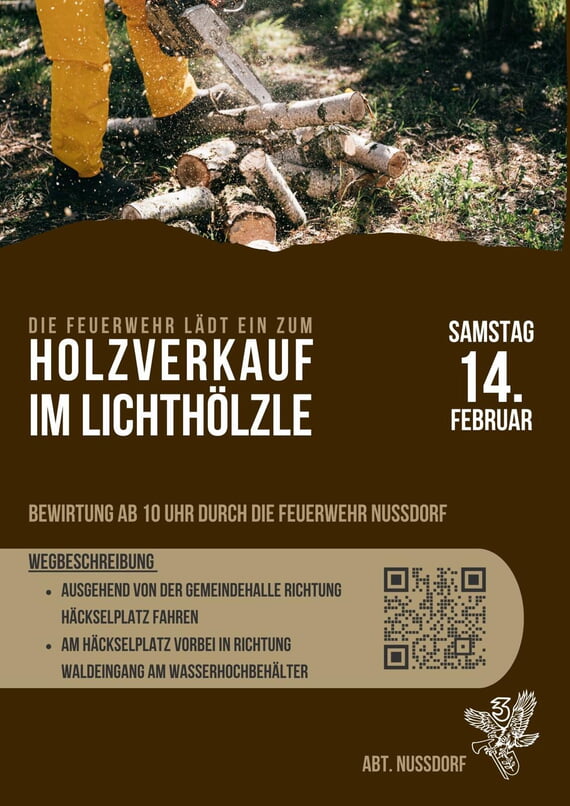 Die Feuerwehr Nussdorf lädt herzlich zur Bewirtung beim Holzverkauf ein.