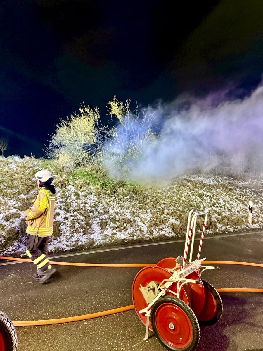 Kurz nach Mitternacht - und damit frisch im neuen Jahr angekommen - meldeten mehrere Anrufer über den Notruf 112 deutlichen Feuerschein im Bereich der Wilhelm-Busch-Straße in Hochdorf.