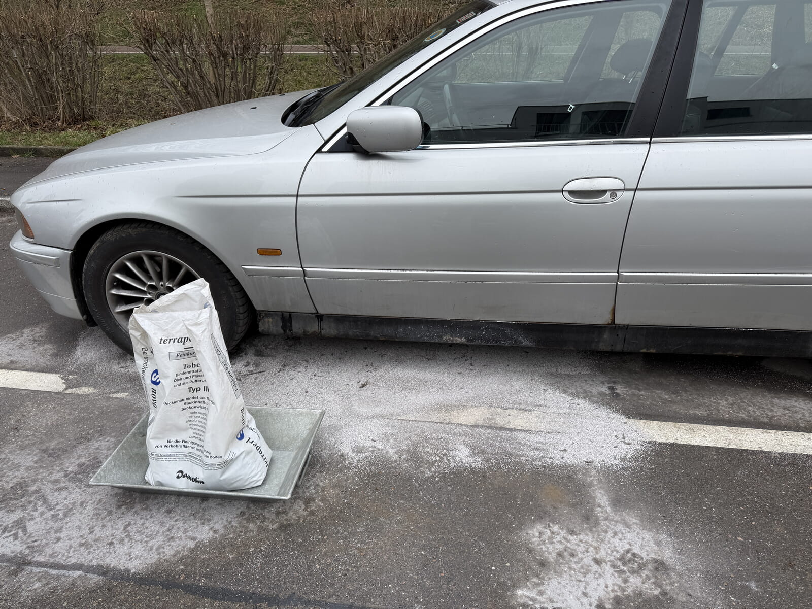 An einem abgestellten Pkw traten Flüssigkeiten aus, welche durch die Feuerwehr mit Bindemittel aufgenommen wurden.