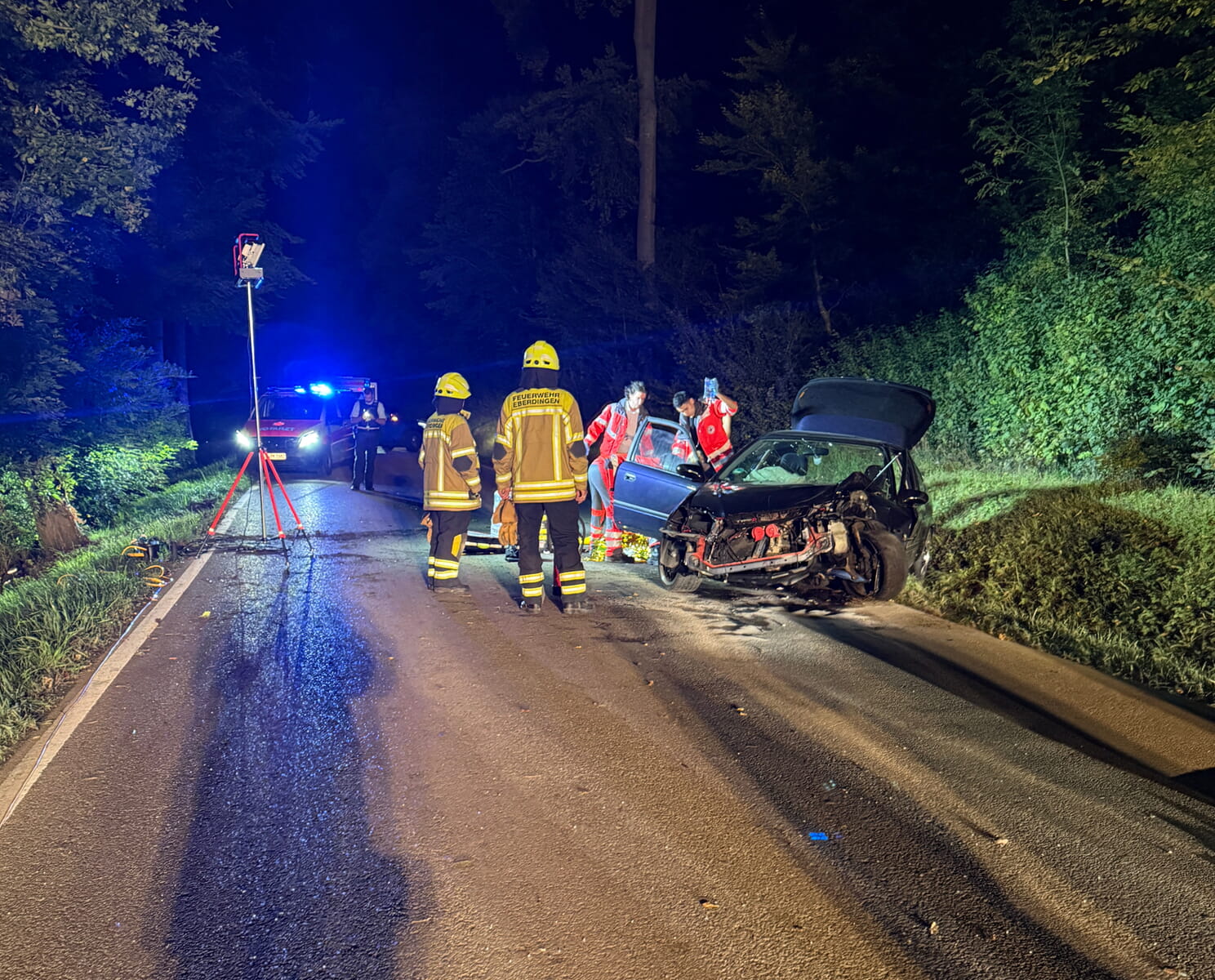 Dort kam ein Fahrzeuglenker von der Fahrbahn ab und kollidierte mit einem Baum. Durch die Wucht des Aufpralls wurde das Fahrzeug auf die gegenüberliegende Fahrbahnseite abgewiesen und kam dort zum Stehen.