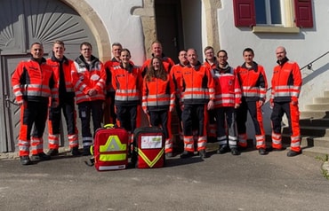 Die Gruppe der Helfer vor Ort besteht aus insgesamt 20 Mitgliedern, davon zwei aus den Reihen des Ortsverein Eberdingen des Deutschen Roten Kreuzes (DRK) und 18 von der Feuerwehr Eberdingen.